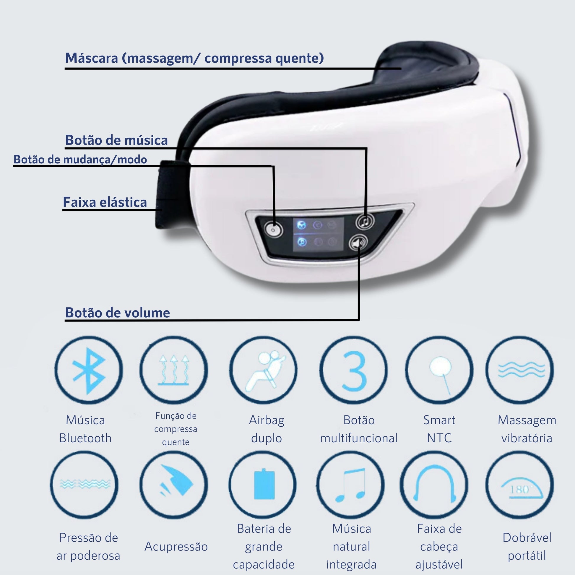 Alívio da Dor de Cabeça: Desfrute de uma sensação de alívio enquanto o EyeRelax massageia suavemente a região dos olhos, ajudando a aliviar a tensão e a dor de cabeça.